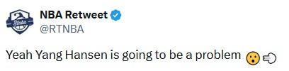 美媒NBA Retweet晒出杨瀚森的集锦,并夸赞道:“没错,杨瀚森将会成为一大威胁”